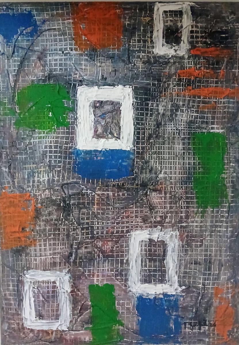 Mista, Tela, 2026Gesso vinilico e acrilici Fa parte di un trittico 1di 3“Finestre sull’essere” è un trittico che esplora il concetto di visione come doppio movimento: osservare il mondo esterno e, allo stesso tempo, attraversare la dimensione interiore dell’individuo. Attraverso stratificazioni materiche realizzate con gesso vinilico e acrilici, le superfici diventano spazi di memoria ed emozione. Le forme geometriche, simili a finestre, suggeriscono soglie simboliche che invitano lo spettatore a riflettere sui propri stati d’animo e sulla relazione tra percezione e identità.